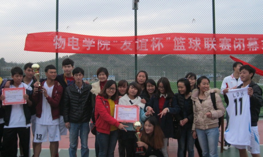 11月25日下午,由物理与电子科学学院团委主办、学院团委学生会承办的“友谊杯”篮球联赛闭幕式暨颁奖仪式在花溪校区篮球场举行,院团委副书记吴培、13级辅导员张诚出席仪式并给获奖班级和获奖个人颁发奖杯和奖证。