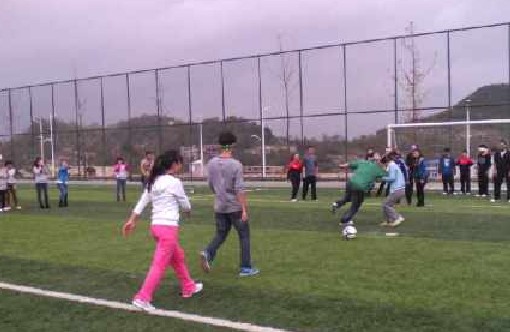 为了加深同学之间的友谊,丰富同学们的课余生活,在2013级法学院辅导员何成忠老师的带领下,法学院2013级的同学们于11月23日上午在足球场进行了“缘来一家人”的盲人足球比赛。