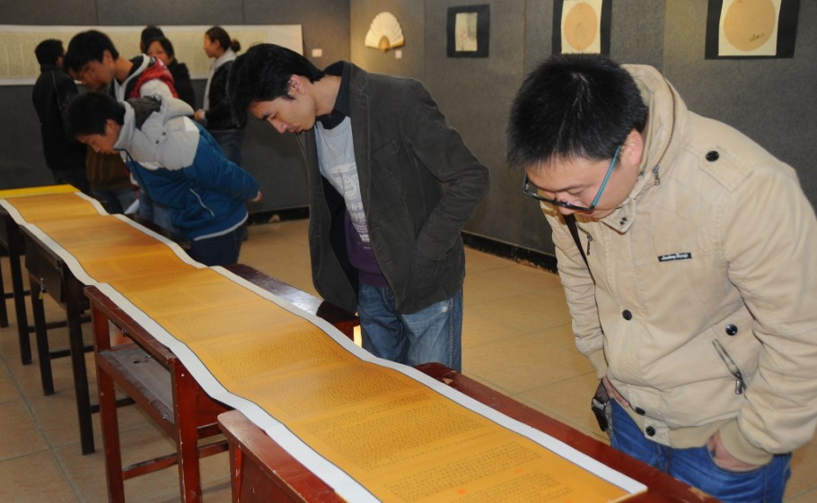 吴廷柱告诉记者,美术系鼓励师生办展,搭建专业交流的平台,在器材使用、教师指导方面都给与了很大程度的支持。近年来,美术系开拓创新,锐意进取,学风建设成果显著。(本网记者 刘美伶 万新林/摄)