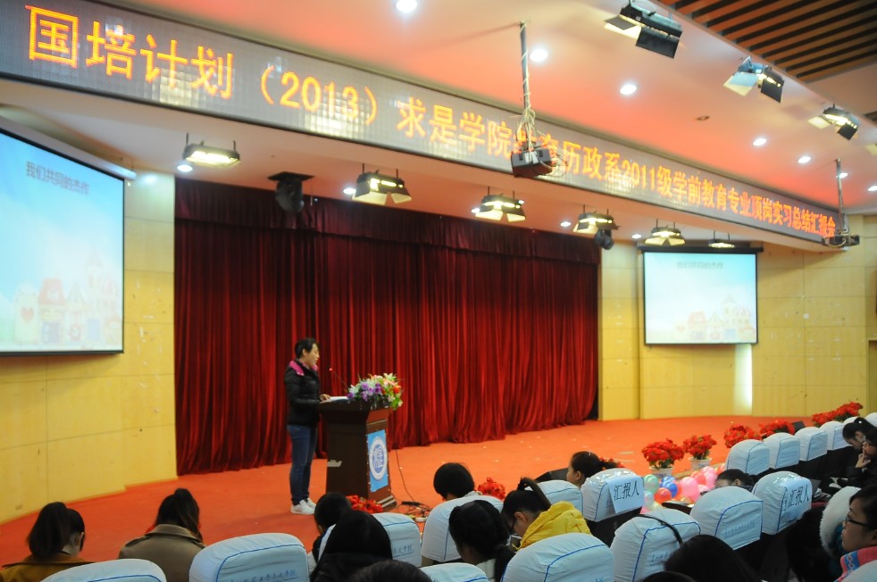 据悉,此次参加总结汇报的214名学生,全部因国培计划(2013)贵州省农村幼儿园骨干教师置换研修项目在我院的实施,而被学院安排到全省60余所农村幼儿园参加顶岗实习。在去参加顶岗实习前,学院还在贵州省选聘幼儿教育专家和一线幼儿高级教师对该214名学生进行了培训及岗前试讲和考核,确保了这批学生能够更好地胜任幼儿教学,服务农村幼儿教育。