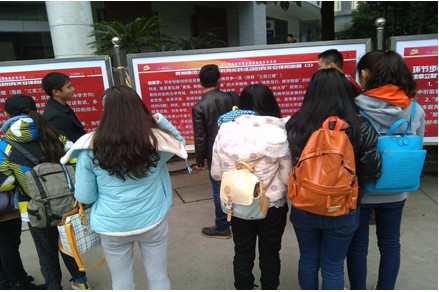 2月26日,我校召开党的群众路线教育实践活动动员会,标志着此项活动全面启动。文学院党委响应号召、提前谋划,组织宝山校区各学生党支部党员、入党积极分子利用课间,集中参观学习党的群众路线教育实践活动展板,并要求大家牢记知识点,撰写思想汇报。