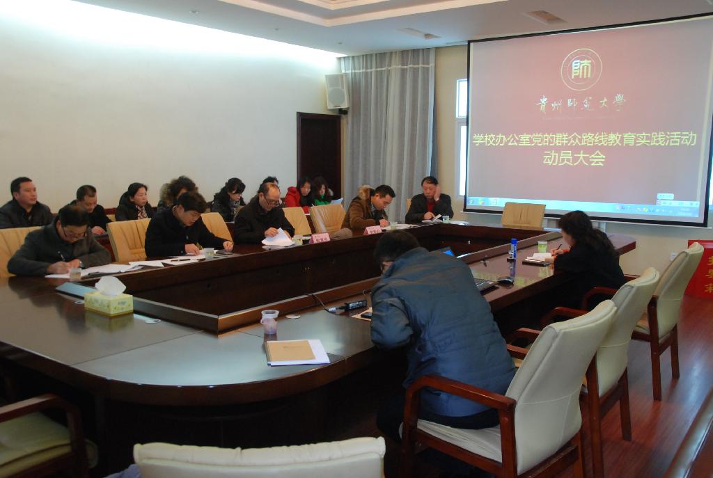 3月6日下午,学校办公室在行政办公楼四楼会议室召开党的群众路线教育实践活动动员大会。学校办公室主任、学校办公室群众路线教育实践活动领导工作小组组长陈云坤作动员讲话。学校教育实践活动第六督导组陈昌华、欧秀松老师、学校办公室班子成员、全体党员及部分工人代表参加动员大会。会议由学校办公室副主任、学校办公室群众路线教育实践活动领导工作小组副组长路世传主持。