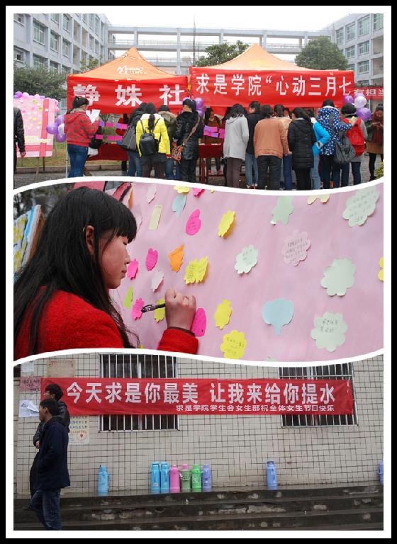 此次活动以“心动求是女生情”为主题,将举行为期一周的女生节系列活动,包括愿望墙、知识加油站、闺蜜时光合影照相留念、礼仪课堂等。在当天的心愿墙征集活动中,吸引了众多女生在留言便签上写下愿望,场面十分热闹,当天就征集到上千条女生心愿。