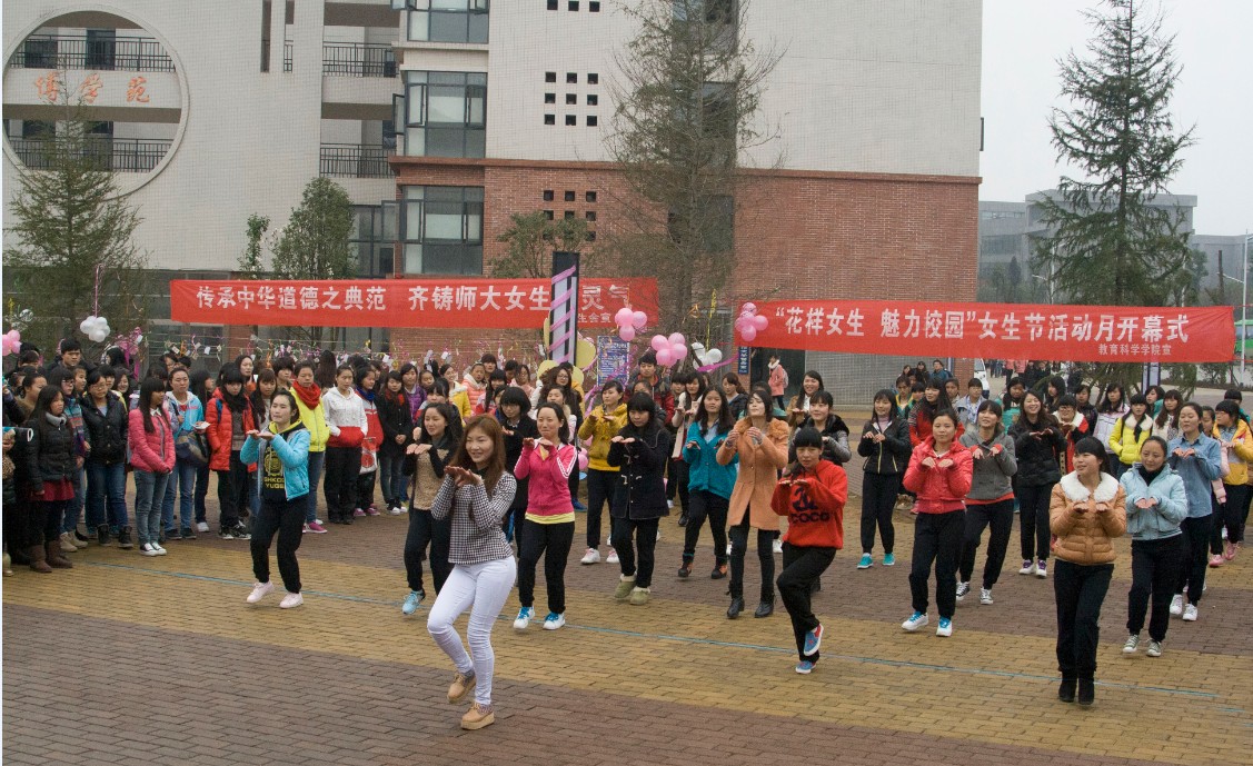 此次活动以“花样女生,魅力校园”为主题,将举行为期一个月的女生节系列活动,包括“我是女生 我为活力代言”快闪活动、光影童话电影展播活动、以及知识讲座等。开幕式本着厉行节约、不断创新的思路,以新颖的快闪贯穿开幕式,学院仁方燕同学首先活力开场,随后,在场围观的女生纷纷加入舞蹈,现场气氛极为热烈。女生们热情奔放的舞蹈,舞出属于女生的青春靓丽,彰显教科女生的自信风貌。最后,活动在女生们极富感染力的舞蹈中落下帷幕。
