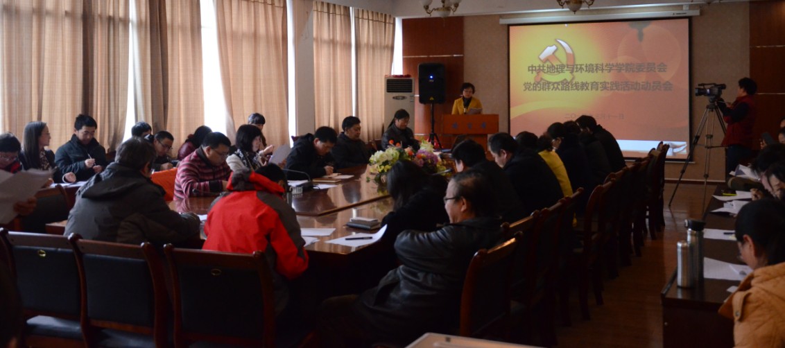 3月11日下午,地理与环境科学学院党委在学院五楼会议室召开党的群众路线教育实践活动动员会,学习贯彻落实省委和学院党的群众路线教育实践活动的精神,对学院教育实践活动进行安排部署。院党委书记杨建红同志作动员讲话,张世泽代表校党委督导组讲话,院长安裕伦主持会议。