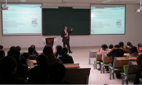 为促进党的群众路线教育实践活动深入开展,进一步深化学院的教学改革,为学生搭建良好的学习平台, 3月11日下午,生命科学学院和国际旅游学院组织学生在花溪校区公教6302教室参加葡萄牙阿威罗大学举办的推介会。葡萄牙阿威罗大学旅游学院副院长卡洛斯(MR RUI CORTA)介绍了阿威罗大学办学历史、整体情况、学校资源、学科设置、教学及科研水平的基本情况,同学们就到葡萄牙阿威罗大学研修期间的学习生活等的具体情况进行了详细的咨询。生命科学学院欲与来访的葡萄牙阿威罗大学建立合作关系,希望能在学生研修,教学和科研等方面开展合作,为学生搭建更加广阔的平台。