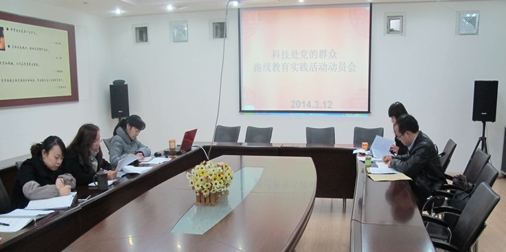 3月12日上午,科技处召开党的群众路线教育实践活动动员大会,对部门开展教育实践活动作动员部署。学校党的群众路线教育实践活动领导小组综合组副组长、组织部副部长彭洁和第六督导组欧秀松老师到会指导。科技处党的群众路线教育实践活动工作组组长李明秀主持会议并作动员讲话。科技处周欣处长和在家的全体教职工参加会议。