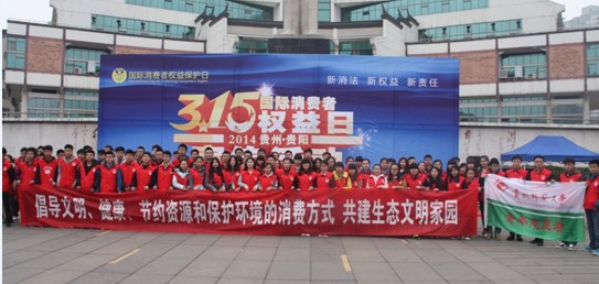 3月15日上午,贵阳3·15国际消费者权益日宣传活动在筑城广场举行,我校100名志愿者参与现场服务活动。