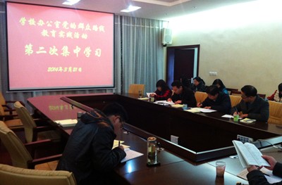 学习活动分两个阶段进行。第一个阶段,结合学校办公室的工作实际,组织观看保密工作警示教育影片。第二个阶段,集中学习《习近平总书记在党的群众路线教育实践活动第一批总结暨第二批部署电视电话会议上的讲话》和《赵克志在全省党的群众路线教育实践活动第一批总结暨第二批部署会议上的讲话》等学习材料。