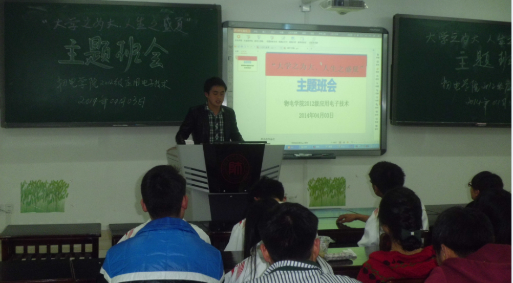 4月3日晚,物理与电子科学学院2012级应用电子班在GJ2304教室召开“大学之为大,人生之盛夏”的主题班会,2012级应用电子班全体同学参加。班会由班长李武松主持。