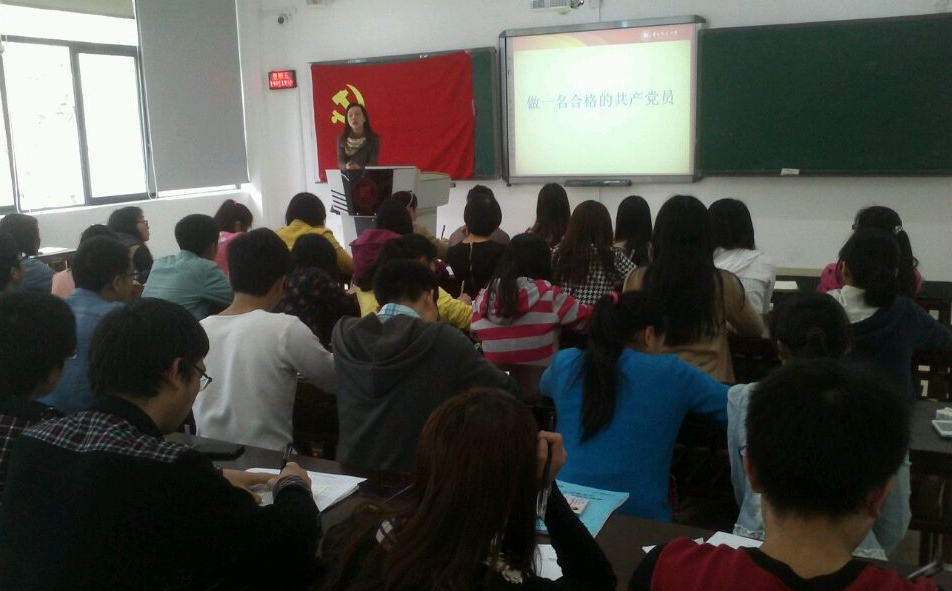 随后由赵本喜带领全体党员进行了新党员入党誓词宣誓和老党员重温入党誓词。此后由项君为同学们做了“做一名合格的共产党员”为主题的专题讲座,报告从党的纪律、党的作风、党员的权利与义务三个方面结合大家的学习、生活、工作进行了详细的讲解。