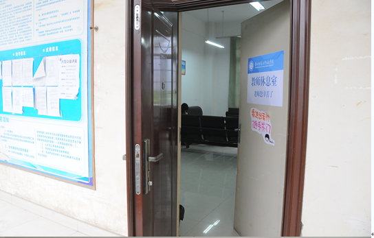 十多平米的休息室里宽敞、明亮,桌椅摆放整齐。考虑到初春时节寒气未退,求是学院党委专门购置了电炉供老师们取暖,连网的电脑供老师们查阅新闻、资料,饮水机、乘车时间表等也为老师们提供了不少方便,一句“老师您辛苦了”的标语给辛勤工作的老师们送去了宽慰和温暖。