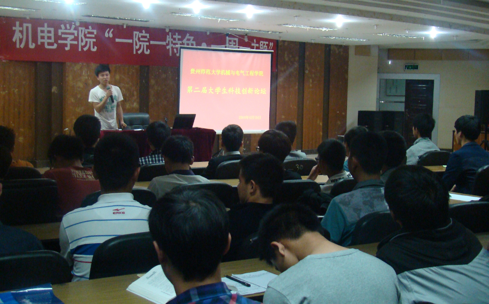 4月15日晚,机械与电气工程学院“一院一特色 一周一主题”活动暨第二届大学生科技创新论坛在综合楼211室举行。此次论坛邀请学院2010级唐绍兵同学和刘厚贤同学作为主讲人,分享他们参加“全国大学生数学建模竞赛”、“全国大学生工业设计大赛”、“全国大学生机械创新设计竞赛”、“全国大学生电子设计竞赛”、“‘挑战杯’大学生课外学术科技作品竞赛”并多次获奖的经验。2013级全体学生参加了论坛。
