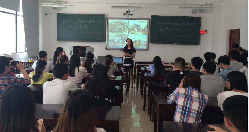 为贯彻落实党的十八届三中全会精神,校团委《关于评选2013年度贵州师范大学“五四红旗团委”、“五四红旗团支部”、“优秀共青团员”、“优秀共青团干部”的通知》精神,深入开展纪念“五四”学生爱国运动95周年主题系列活动,进一步加强共青团基层组织建设,增强广大团员青年的光荣感和使命感,树立典型,表彰先进,经济与管理学院于4月18日下午在花溪校区GJ4203开展“五四红旗团支部”评选大会。院党委副书记项君、院团委书记张晶晶、2012级辅导员向凯麟、2013级辅导员赵元钊担任评委,2011、2012、2013级各团支部所有团干参会。