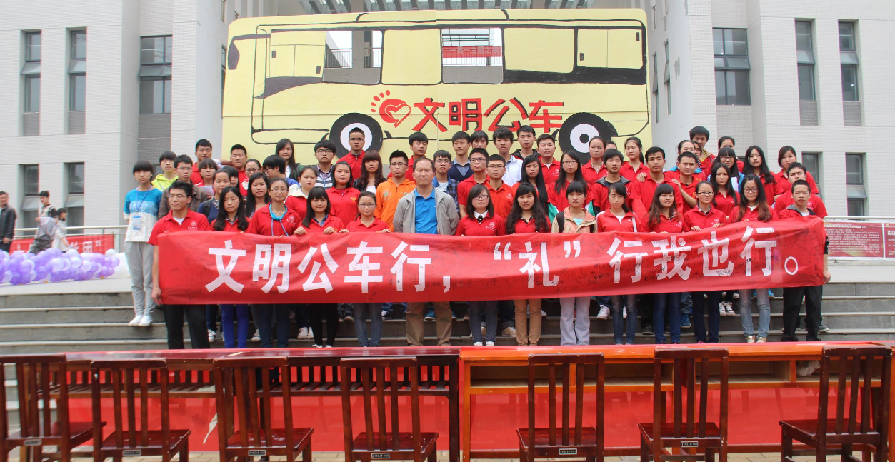 为落实党的群众路线教育实践活动学习,校团委广泛听取青年学生的意见,将学生反映的问题,立整立改,全力做好校团委六大“服务工程”,基于广大学生反映,花溪校区学生数量众多,公交站口总是人山人海,每当公交车一到站,人们就蜂拥而上,场面混乱且易引发危险。校团委在花溪校区发起文明公车行,“礼”行我也行的“文明乘车”活动。以此次活动为载体,更好的服务广大同学。