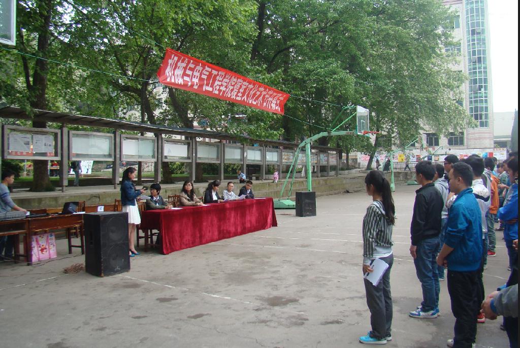 4月24日13:00,机械与电气工程学院第二届“寝室文化节”开幕式在白云校区百汇吉超市前篮球场隆重举行。院党委副书记黄平惠、团委书记李梅、2011级电气班辅导员邢丹花、2013级机械班辅导员朱成龙、2013级电气班辅导员许珊、2013级全体学生参加了开幕式。