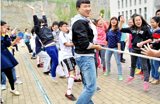 为更好地贯彻落实党的十八届三中全会关于“强化体育课和课外锻炼,促进青少年身心健康、体魄强健”的精神,引导和帮助全院学生提高参加体育锻炼的主观能动性,提高身体素质,4月25日下午,数计学院于花溪校区第一食堂前举行了“凝心聚力”拔河比赛。