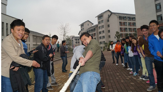 为了在青年大学生中弘扬五四精神,纪念五四运动95周年,促进青少年身心健康、体魄强健”的精神,重温习总书记2013年五四讲话精神,引导全院学生积极参加体育锻炼,提高身体素质,4月28日下午6时,数计学院“凝心聚力,重温五四”拔河比赛总决赛在花溪校区第一食堂前举行。院团委副书记王炳江老师、各班参赛队员及啦啦队共100余人参加。
