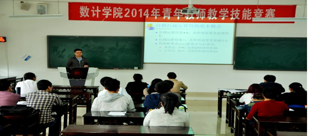 为提高青年教师的教学技能水平,搭建一个相互交流教学教育的平台。数计学院于4月25日在花溪校区GJ3415、3417举行了2014年青年教师教学技能竞赛,院党委书记戴雪梅、副书记孙谦、副院长夏小刚等多名老师出席了本次比赛并担任评委,部分学生代表参与了本次教学技能竞赛活动。本次教学技能竞赛分数学组、计算机教育组同时进行,比赛规则为15分钟授课、3分钟答辩,两方面综合考核,比赛开始前十分钟由参赛老师进行授课顺序的抽签。