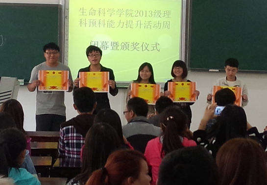 搭建成长阶梯,助推学子成才,生命科学学院为了在践行党的群众路线教育实践活动中更好的服务学生成长成才,在花溪校区针对预科学子开展了为期一周的能力提升活动。活动中学子们积极参与,效果良好,于5月4日上午召开了活动周闭幕暨颁奖仪式,在仪式上表彰了活动中表现突出的团队和个人。通过活动周的开展不仅为学子搭建了展示个人才华的舞台,同时也培养了班级携手奋进的良好氛围,更形成了助推学子全面发展的良好机制。