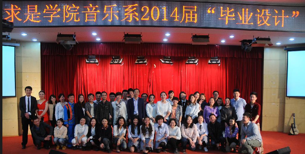 此次演出经过一个月的排练,凝聚了众多师生的辛勤汗水和殷切期盼。凝结着音乐学子智慧的原创歌曲《新之火》更是表达了音乐系2014届学生对辛勤培育自己的老师的深深感激与不舍之情,深深地感动着在场的每一位观众。汇报演出既是音乐系教学成果的展示,也是音乐系教学改革与能力培养相结合的一次成功的表演。通过演出展示了2014届毕业生在校四年来的学习成绩,坚定了同学们走向社会的步伐和信心,相信音乐学子的明天更美好,求是学院的明天更辉煌。
