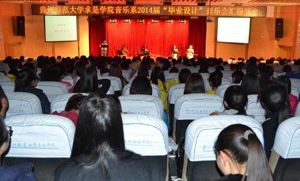4月29日晚,求是学院音乐系2014届“毕业设计”音乐汇报演出在求是讲堂圆满举行,本场音乐会由求是学院音乐系2014届毕业生筹办,求是学院党委书记战勇等老师与500余名学生共同观看了演出。