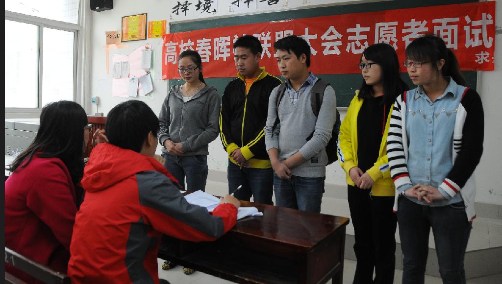 在高校春晖社联盟成立大会暨大学生践行社会主义核心价值观交流会即将在求是学院召开之际,为全面做好活动志愿服务工作,更好接待来自全国的师生代表,5月5日中午,求是学院分三场开展了此次活动志愿者选拔,1247名学生报名参加此次选拔,最终录取380人。