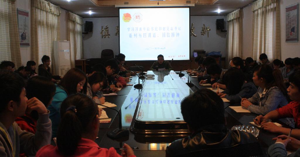 5月8日19时,职业技术学院团组织各学生组织、社团及各班班长、团支部书记等学生干部在二教四楼会议室集中学习和讨论了习近平总书记和赵克志书记系列五四讲话、回信精神。活动由团委书记吴旭梦老师主持。