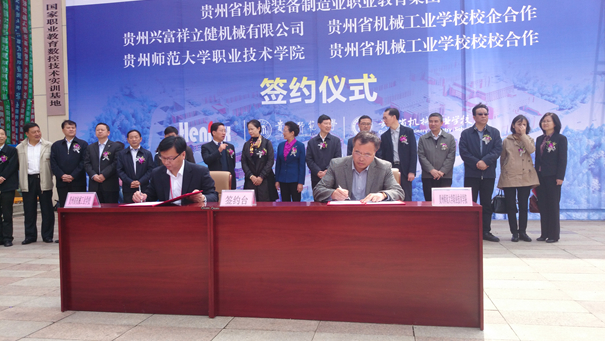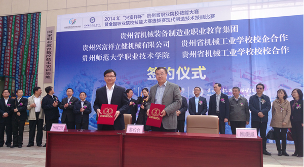 开幕式后,在省人大、省政府、省政协及有关省厅领导的共同见证下,曾宪林院长、武斌如校长分别代表贵州师范大学职业技术学院和贵州省机械工业学校签署两校合作协议。此举有利于双方共建共享师资和实训设施设备,优势互补,切实提高人才培养的针对性、实效性。