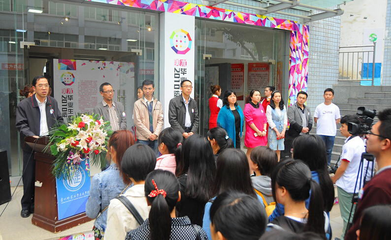 战勇在致辞中赞扬了2014届美术系毕业生在临毕业前上交的“毕业作业”。他代表学院感谢同学们的辛勤付出,使作品展如期举行,为学院师生送上了这场视觉盛宴。他指出,学院会始终关注同学们今后的成长动态,希望同学们“志存高远,胸怀宽广,知行合一,在困难中学会坚守,在坚守中抓住机遇,在未来的工作岗位中大展宏图”。