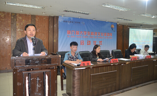 仪式共分为四个部分进行。杨波介绍科技文化活动月的活动计划;2012级冶金工程班学生代表徐荣嬛同学发言,表达同学们参与此项活动的积极愿望;刘卫宣布活动正式开始;陈辉林发表讲话。在讲话中,陈辉林表示科技创新能力是提升我们工科学生的核心竞争力的重要载体。学院的科技活动月结合当下,联系实际,内容丰富,形式多样,希望同学们积极参与其中。同时,陈辉林也代表学院对此次活动提出建议和要求:一是学院团委及各学科老师要认真组织,精心筹备此次活动;二是同学们要按照学院的统一安排,广泛参与,努力提升自身综合素质,让该活动成为学院的品牌特色活动。