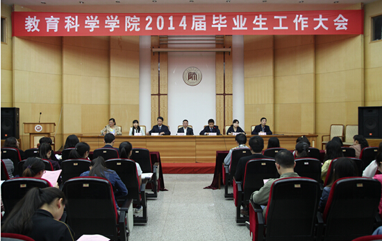 教育科学学院以党的群众路线教育实践活动为契机,进一步做好2014届毕业生就业服务、文明离校等相关服务管理工作。5月16日上午9点在宝山校区田家炳大楼三楼多功厅召开了教育科学学院2014届毕业生工作大会。贵州师范大学副校长、教育科学学院院长赵守盈、副院长何克、党委副书记罗洪刚、党委组织员吴嘉佳、党委委员郑志平、袁凤琴、各学科主任、全体辅导员以及学院2014届各班毕业生共计200余人参加会议。大会由党委秘书杜吉娴主持。