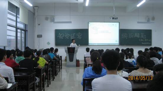 讲座上,蒙仕明给同学们详细介绍了制作视频的基本步骤及相关的制作软件,并在现场亲自示范视频制作,播放他亲手制作的精彩视频供现场观众欣赏,引起了在座同学的浓厚兴趣;随后,他分享了自己的工作经历,与同学们交谈生活,传授经验,现场气氛十分融洽。讲座最后,杨柳老师带领在场的同学为即将毕业的师兄师姐录制了一段祝福视频。