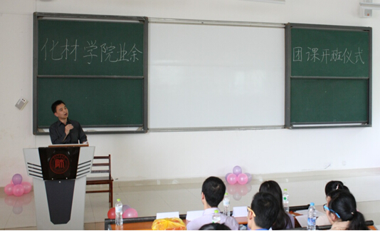 5月23日,化学与材料科学学院团课培训开班仪式在花溪校区阶梯教室6402隆重举行。出席开班仪式的嘉宾有化材学院党委副书记王光彦老师,宝山校区团委负责人王亚丽老师,辅导员周能老师以及罗熙兰老师。