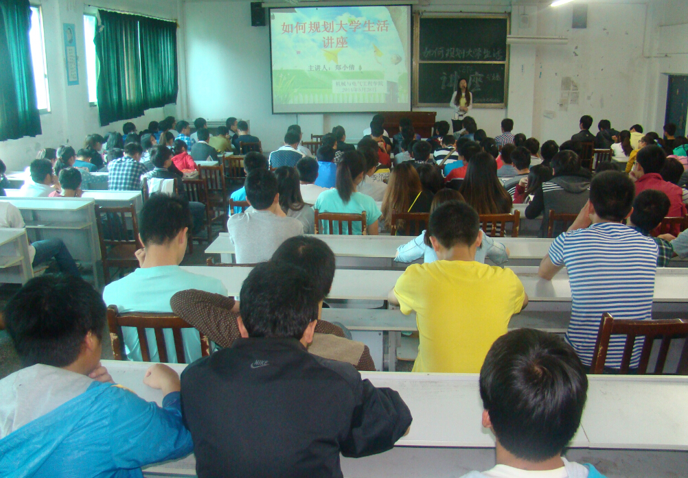 5月28日中午,机电学院“关爱学生 助力成长”系列讲座之“如何规划大学生活”在综合楼308教室举行。主讲人是机电学院电气系郑小倩老师。院团委书记李梅、副书记许珊及2012级电气类250余名同学到场参加本次讲座。