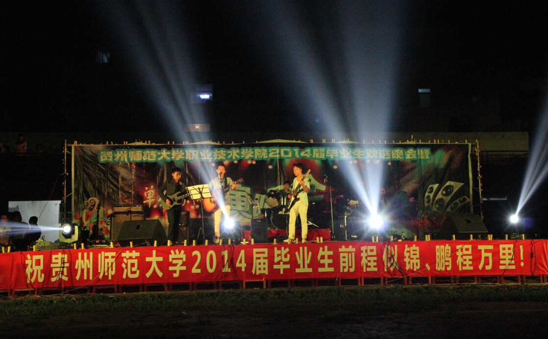 6月5日晚,由职业技术学院团委主办、单弦乐队承办、职业技术学院学生会协办的2014届毕业生欢送会暨单弦乐队演唱会在白云校区田径场成功举办。职业技术学院院长曾宪林、校团委李龙和胡左高老师、部分兄弟学院辅导员老师出席晚会现场,1000余名同学观看了晚会。