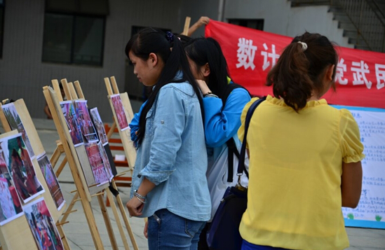 6月3日,在一食堂门前,学院积极组织开展了爱心奉献――党武民小义务支教活动展。临近中午,展出正式开始,所展出了100余副照片涵盖了数计学院支教部全体成员本学期于党武民族小学支教过程中授课、解题、游戏、以及六一儿童节联欢会上的种种细节。一幅幅真实细腻、饱含深情的照片记录了支教队员们的困苦艰辛,吸引了各学院各年级的同学们前来参观。本次展览向大家详尽地展示了数计学院支教队员们的艰辛历程,激励了更多的青年学子投入到伟大的教育事业中去,坚定了支教队员们今后支教生活的决心和勇气。