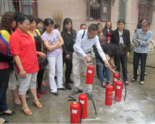 宿管中心蔡毅同志对员工进行灭火器使用培训