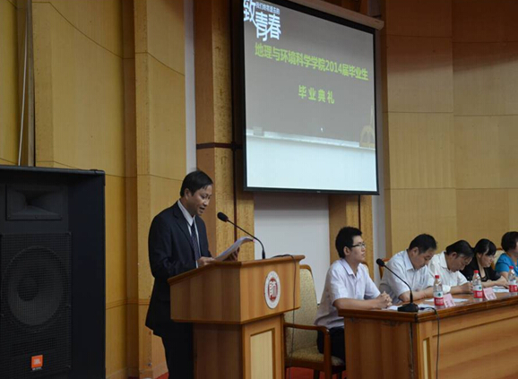 6月18日下午,地理与环境科学学院2014届毕业生毕业典礼在田家炳书院三楼多功能厅举行。