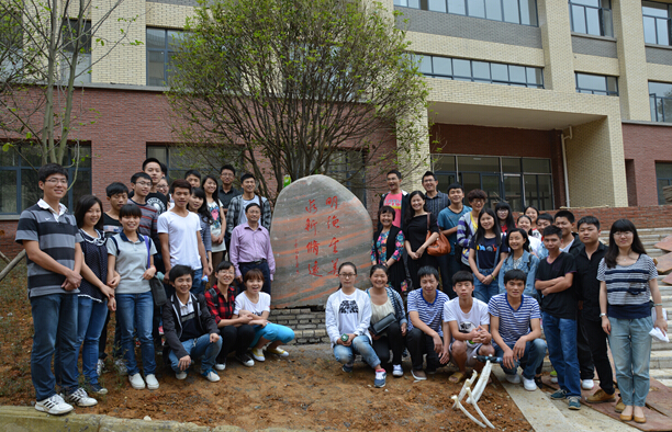 为了回报母校四年的培育之恩,地理与环境科学学院2014届全体毕业生在即将离校之际赠送一份特殊的毕业礼物——彩霞石。6月16日上午11点,学院党委书记杨建红、院长安裕伦、副书记田伟、教师代表、毕业生和低年级学生代表共同见证这一时刻。在塔吊车的轰隆声下,正面镌刻着“明德至善、求新修远”院训,背面镌刻着“饮水思源”的彩霞石,庄严地伫立在了地理与环境科学学院花溪校区办公大楼门前。彩霞石饱含着2014届毕业学子“深深母校恩、殷殷学子情”的厚意,表达了2014届全体毕业生对母校的无限怀念和深深感恩之情。这份礼物是学子们给母校师生留下的一笔无形的精神财富,传承了地环学子尊师重教、爱校爱院的传统。