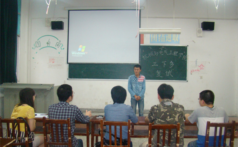 6月19日,机电学院2014年暑期“三下乡”社会实践活动队员复试在综合楼102教室进行,担任评委的有院团委副书记许珊,辅导员朱成龙、廖文群,电气系老师罗云,通过初试的50余名同学参加了本次复试。