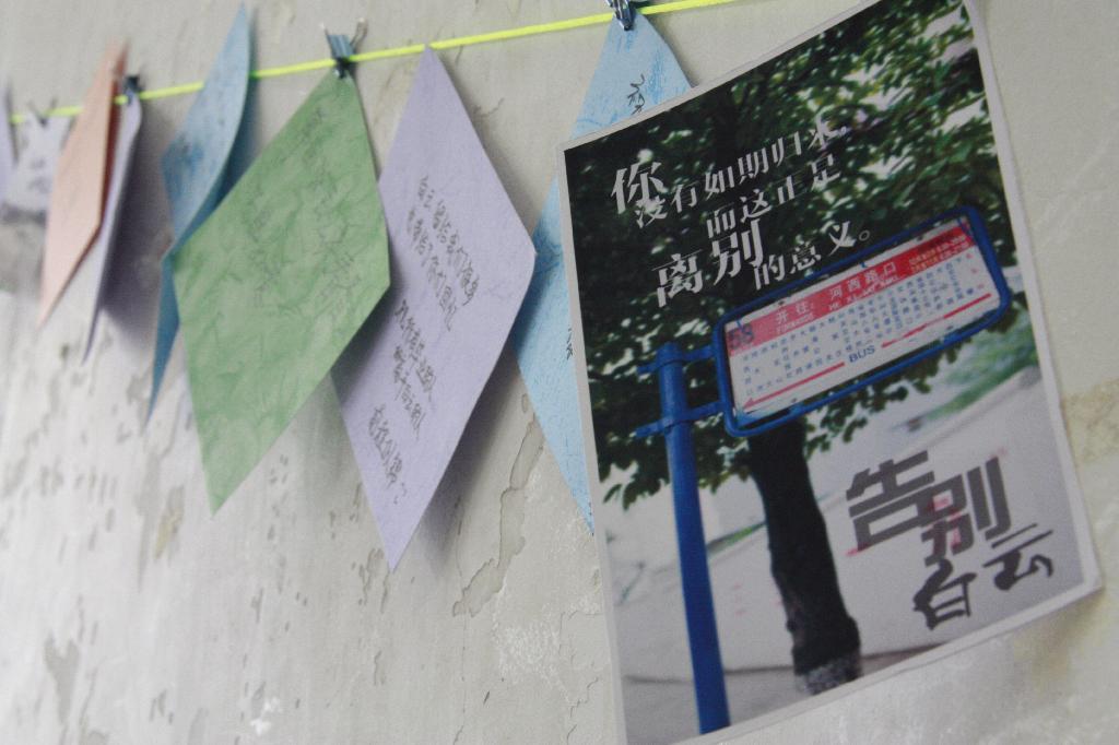 当天,在通往晚会现场的通道上布满各式各样的彩色卡片,一张张卡片上尽是同学们字字真切写下的“留给白云的一句话”,这些话语虽各不相同,却都表达出了即将离别的感慨与怀念。