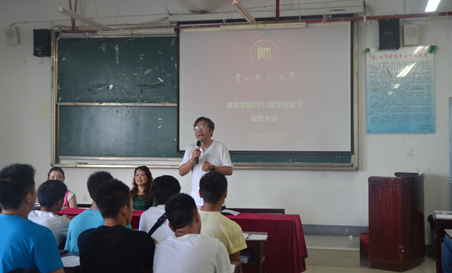 7月1日,体育学院召开2011级学生实习动员大会,学院党委书记路言莉,副院长徐宏,团委书记兼2011级辅导员马丽华及2011级全体学生参会。