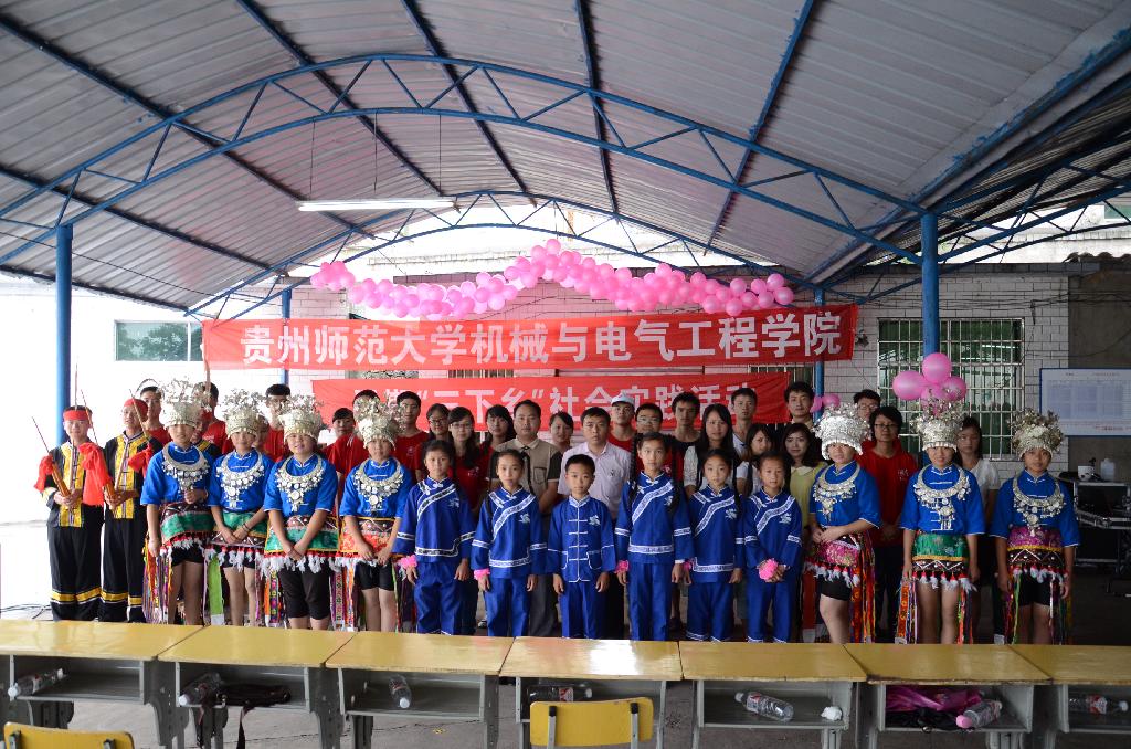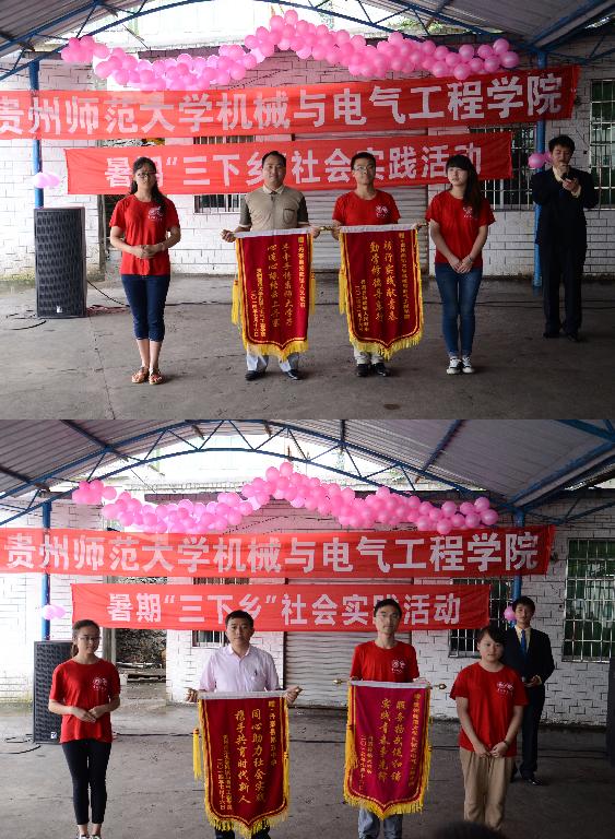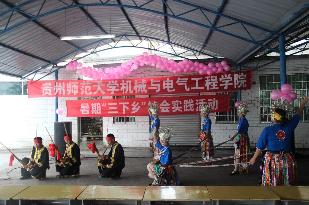 7月16日上午,机械与电气工程学院“为祖国勤学修德 以实践明辨笃实”2014年暑期“三下乡”社会实践活动文艺汇演在丹寨县第五中学举行。丹寨县扬武镇党委副书记李文周、团委书记王春凤,丹寨县第五中学校长陈炳贵,学院“三下乡”社会实践活动带队老师朱成龙、许珊、罗云、廖文群出席活动。活动由志愿者王甜、雷路主持。
