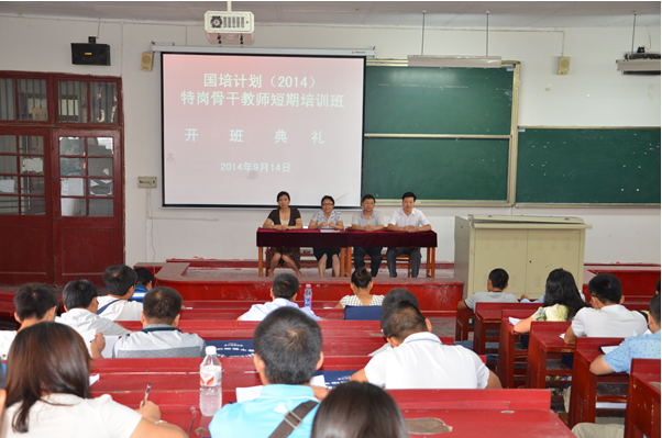 9月14日上午,物理与电子科学学院在物理楼733教室召开“国培计划(2014)特岗骨干教师短期培训班”开班典礼。学院党委书记宇燕、院长陈世国、副书记李应发、副院长宋晓书以及2014特岗骨干教师培训班的全体学员出席。大会由班主任李琼敏老师主持。