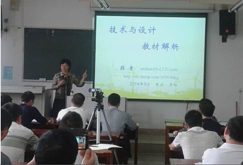 9月18日下午,物理与电子科学学院邀请国家普通高中技术课程标准组核心成员、教育部“国培计划”专家组首批入选专家、海南省教育研究院教研员、技术课程特级教师段青老师在文科楼7—9教室为我校“国培计划(2014)”置换脱产研修培训项目高中通用技术学科的学员做题为《技术与设计》教材解析的专题讲座。讲座由物理与电子科学学院副院长宋晓书主持。