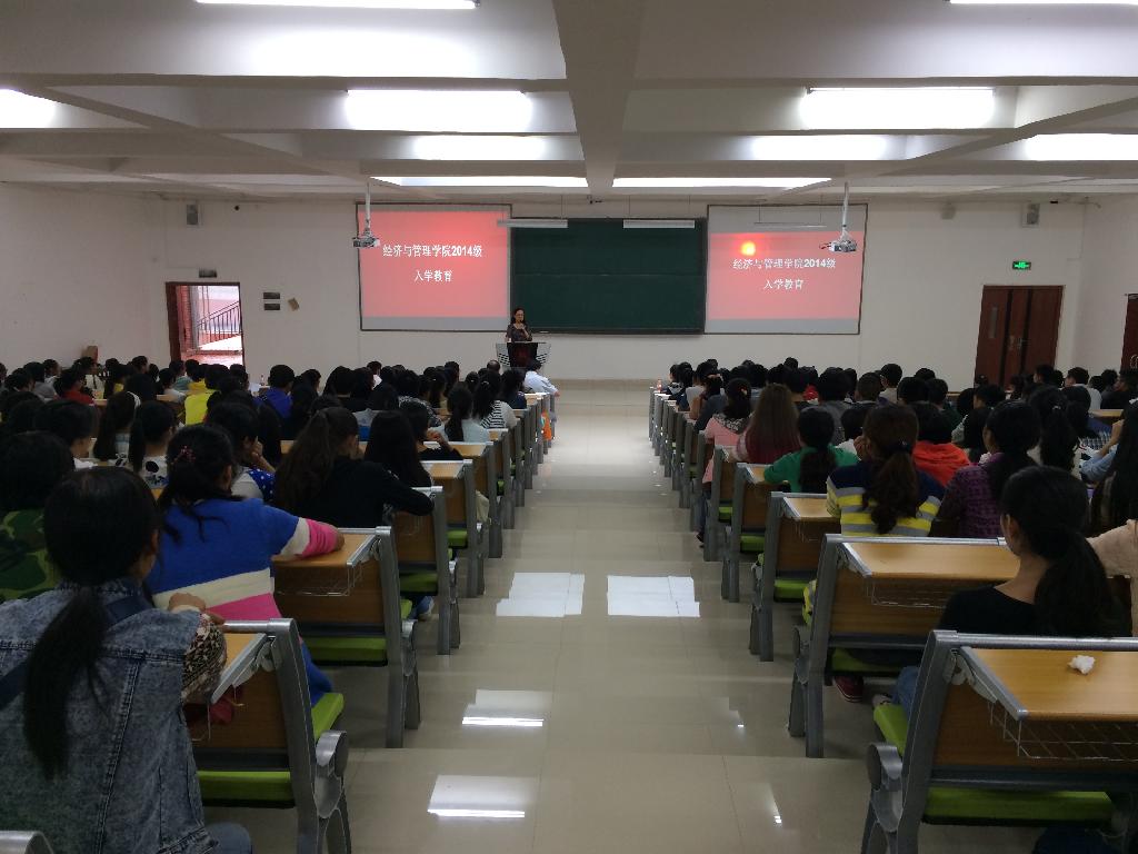 秋日和风,丹桂飘香,经济与管理学院2014年迎新工作及入学集中教育工作于28日、29日进行。在校、院党委的领导下,在学院全体辅导员和迎新志愿者们的共同努力下,经济与管理学院圆满完成2014年迎新工作。