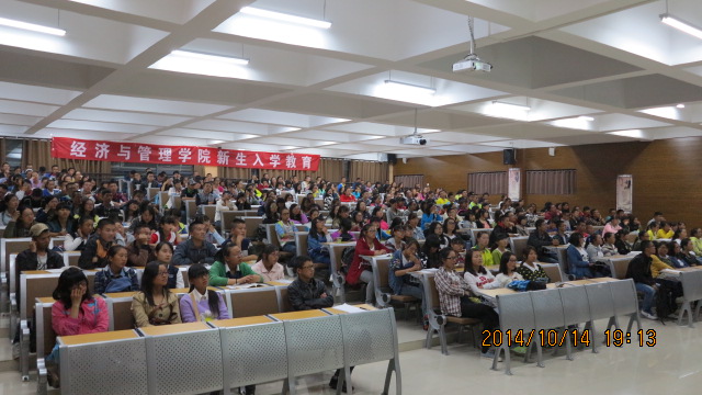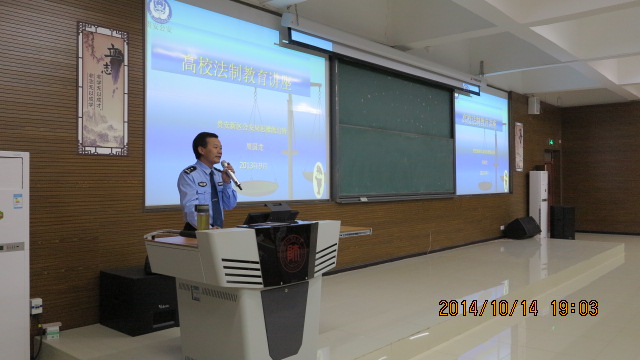 10月14日晚,经济与管理学院入学教育系列讲座之法制安全教育讲座于花溪校区GJ6201举行。为提醒新生注意人身财产安全,增强同学们的安全意识,讲座特邀贵安新区公安局思雅派出所周国龙所长主讲,讲座由院团委书记张晶晶主持,2014级辅导员李庆以及全体新生到场聆听讲座。讲座内容包括贵安新区发展介绍、法律知识宣传、日常安全防范、毒品危害知识等。