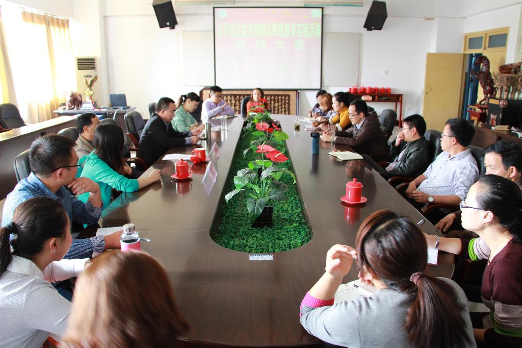 10月21日下午,法学院党委在学院会议室召开党的群众路线教育实践活动总结大会。学院领导班子、教职工代表、民主党派教师代表、离退休教师代表、学生代表共20余人参加会议,校第二督导组组长宋锡章同志,成员牛晓娟同志出席会议。总结会由院长潘弘主持。
