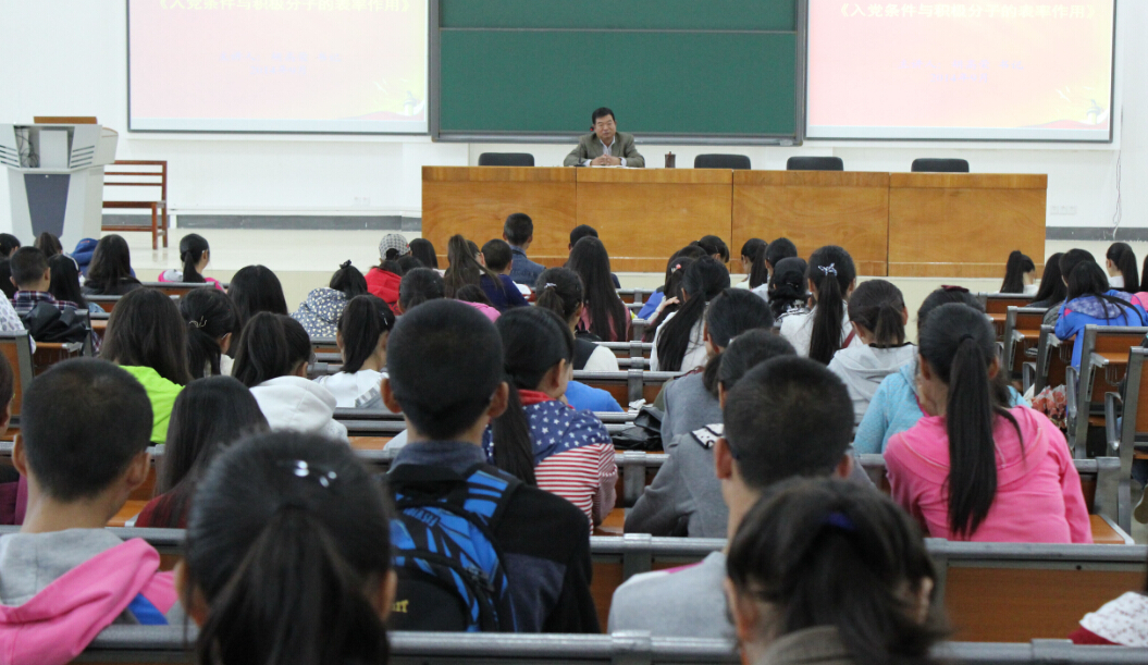 为了增强新生对党的认识和理解,提高他们的思想政治觉悟和理论修养,进一步加强我院学生入党积极分子队伍建设,切实做好“早选苗、早教育、早培养、早发展”工作,保证学生党员队伍质量。我院党总支按照校党委《关于在2014级新生中深入开展党的知识教育系列活动的通知》要求,于 9月29日、10月17日、10月22日,在职院教学楼五楼学术报告厅,开展了新生党的知识系列培训讲座,分别由我院党总支书记胡高荣、副书记印明富、总支秘书李华主讲。